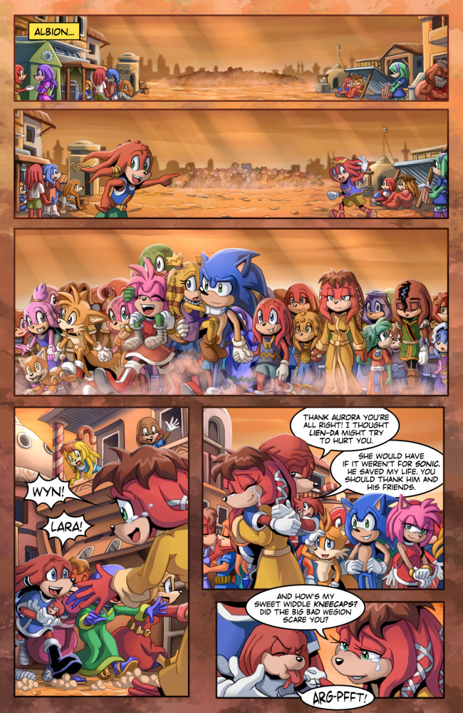 So, how does SONIC RETOLD play out? Well, it starts with the events of Sonic #243 and the Endangered Species arc and completely rewrites it all, no Thrash showing up to ruin everything and no dealing with the Krudzu Hybrid Hydra this time. Sonic and his friends save most of the echidnas in Albion and mostly drive out the Dark Egg Legion before they continue on with their mission to save Sally Acorn, whom Sonic soon has bad dreams about from time to time. In New Mobotroplis, on the homefront, Team Freedom deals with the Tails Doll as usual and there's still the whole Ixis Naugus and Geoffery St John plot that was going on before the reboot happened.